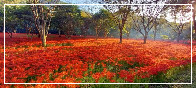 상사화는 붉은 꽃무릇 외에도 여러 품종이 있으며, 7월 중순에는 진노랑상사화가 산속을 은은한 노란빛으로 물들이고, 이후에는 붉노랑상사화, 백양꽃 등이 차례로 개화합니다. 하지만 이 꽃들이 모두 지고 난 후, 9월 중순에는 붉은 꽃무릇만이 남아 불갑산의 초가을을 완성합니다. 초록빛 산자락 아래 이파리도 없이 화려하게 꽃만 피운 상사화는 마치 시간의 흐름을 압축한 계절의 그림처럼 다가오며, 그 길 위에서는 걷는 것조차 하나의 예술이 됩니다. 그렇기에 이 축제를 찾는 발길은 해마다 끊이지 않습니다.