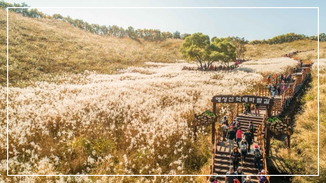 1.2km에 달하는 억새바람길은 데크길로 걷는 재미는 물론, 곳곳에 마련된 포토존 덕분에 사진 찍는 재미도 더해줍니다. 매년 10월 중순부터 말까지 이어지는 억새 절정기에는 억새와 단풍이 어우러져 산 전체가 황금빛과 붉은빛으로 물들며 장관을 이룹니다.
